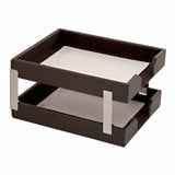 Made from bonded brown leatherLetter trays are open at front for easy accessIncludes 2 letter trays, and stacking postsSilver color accented stacks to support the traysOverall dimensions: 13.67L x 10.62W x 7.12H inchesA3622 Color: Brown Features: -Includes silver stacking tray posts. -Letter trays. -Partially open front allows easy access. Product...