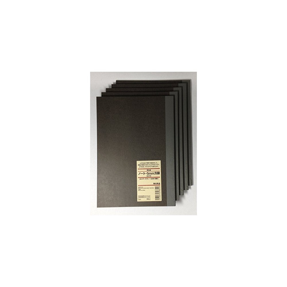 MUJI brand notebook 5mm grid A5-size(approx.148mmÃ-210mm)Dark gray cover and thread binding , 5books set.Made by recycled paper more than 55%Made in Japan.