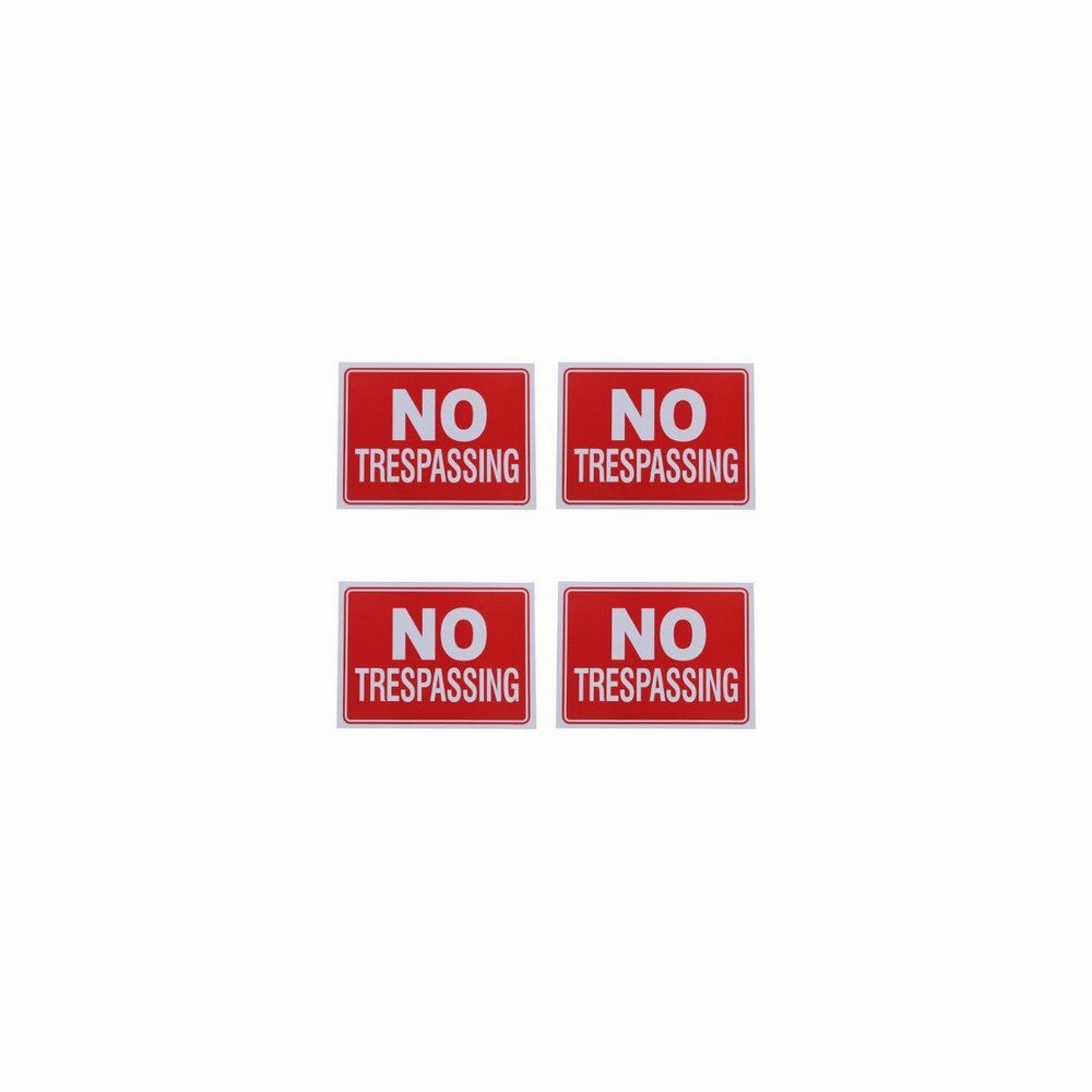 States "No Trespassing" in white and has a red backingDurable plastic, weatherproofBright and highly visible9 inch x 12 inch no trespassing signPack of 4