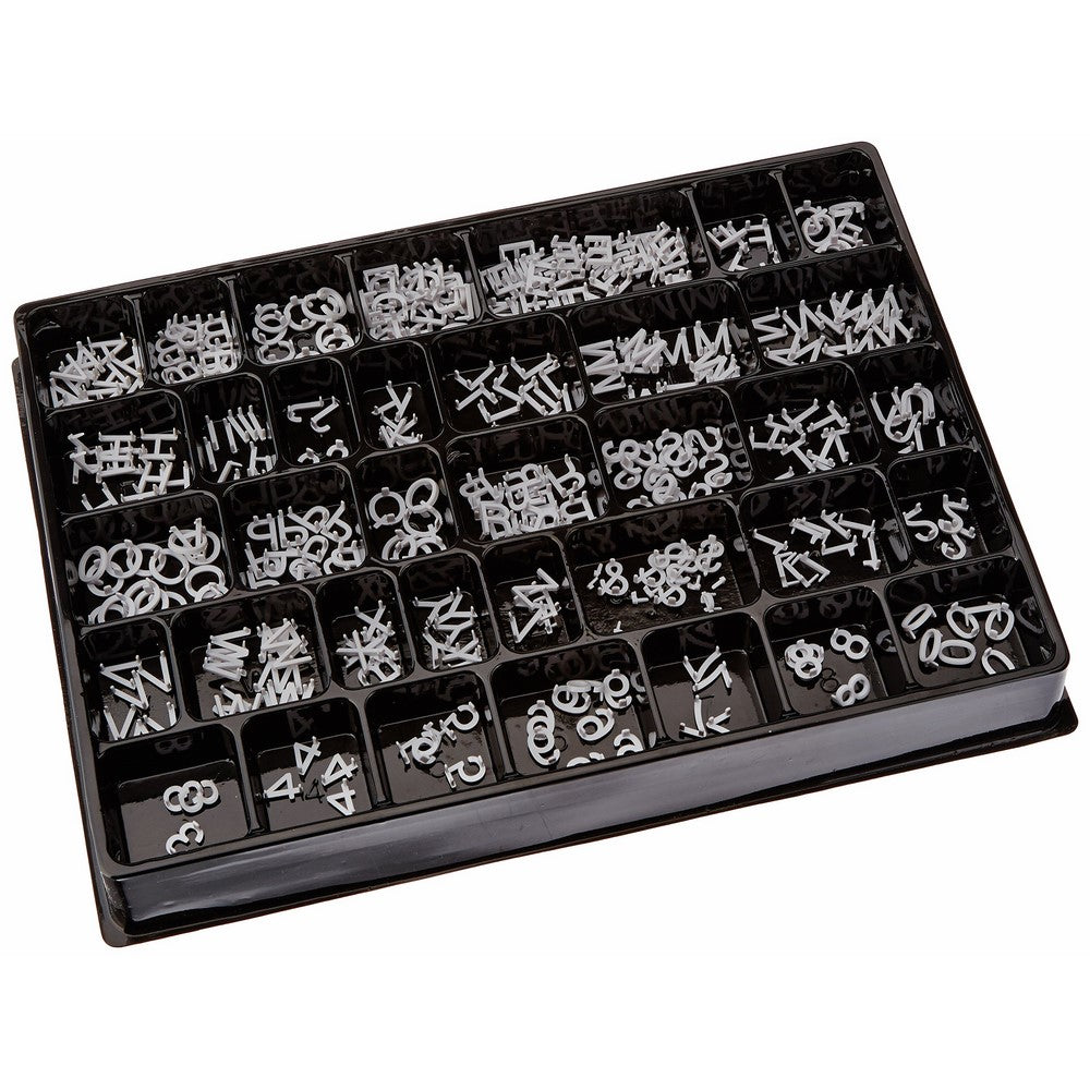 Attractive plastic pin-style characters fit easily into Quartet felt letter board surfaces for easy-to-update displaysCharacters are Helvetica font for clear readabilityPre-sorted letters come in plastic compartment tray for easy use and storageSet includes 300 letters, numbers and symbols0.5 Inch size, white