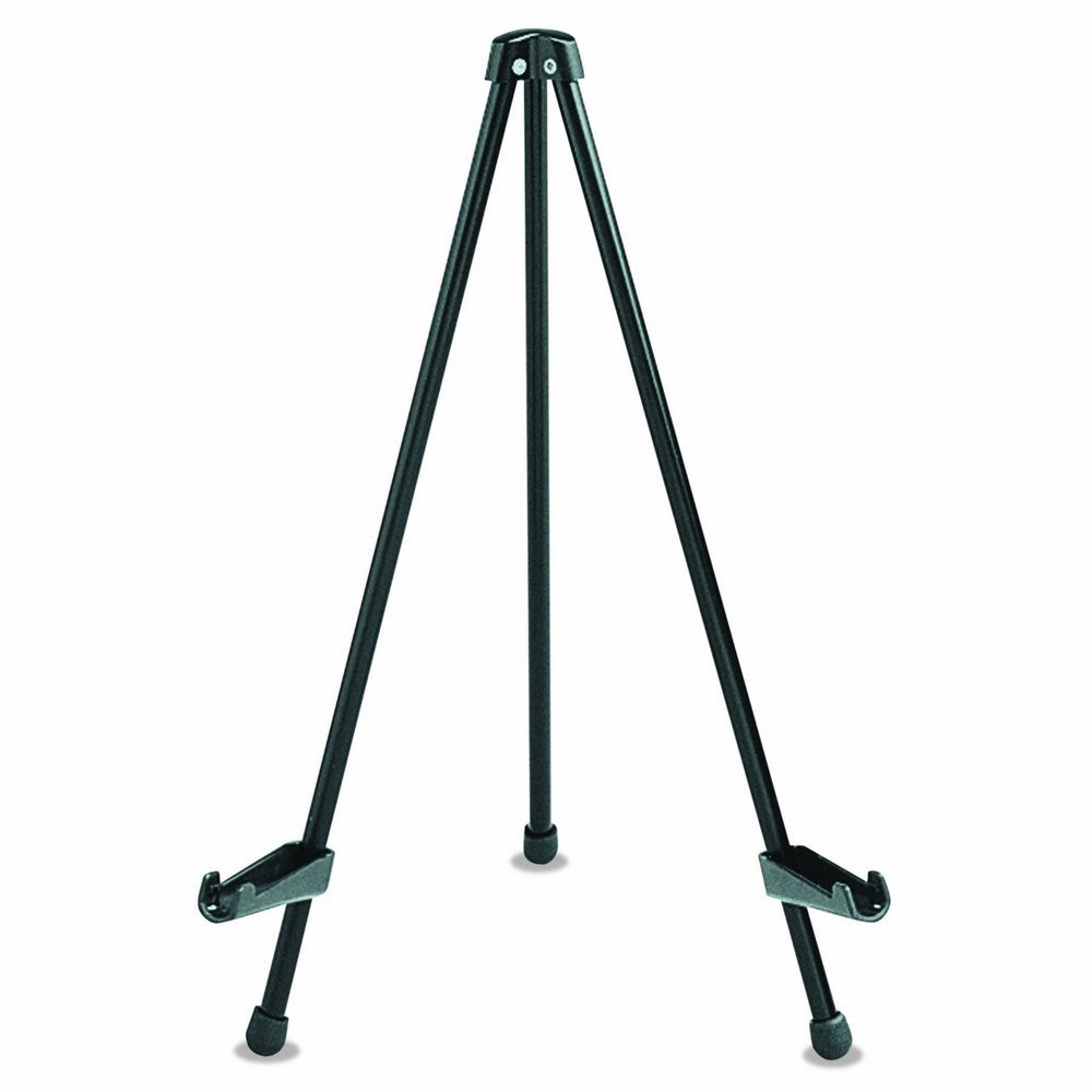 Turn any tabletop into an instant display surface with this compact and portable easel; Ultra-light, foldaway display easel can support more than five times its weight and is perfect for meeting roomsUltra-compact, 14" portable display easel weighs 1/2 lb.Supports up to 5 lbs. display weightSpecially designed for tabletop useBlack, tripod frame collapses to 14 3/4" when foldedConveniently fits into a laptop bag or briefcase1 year warranty