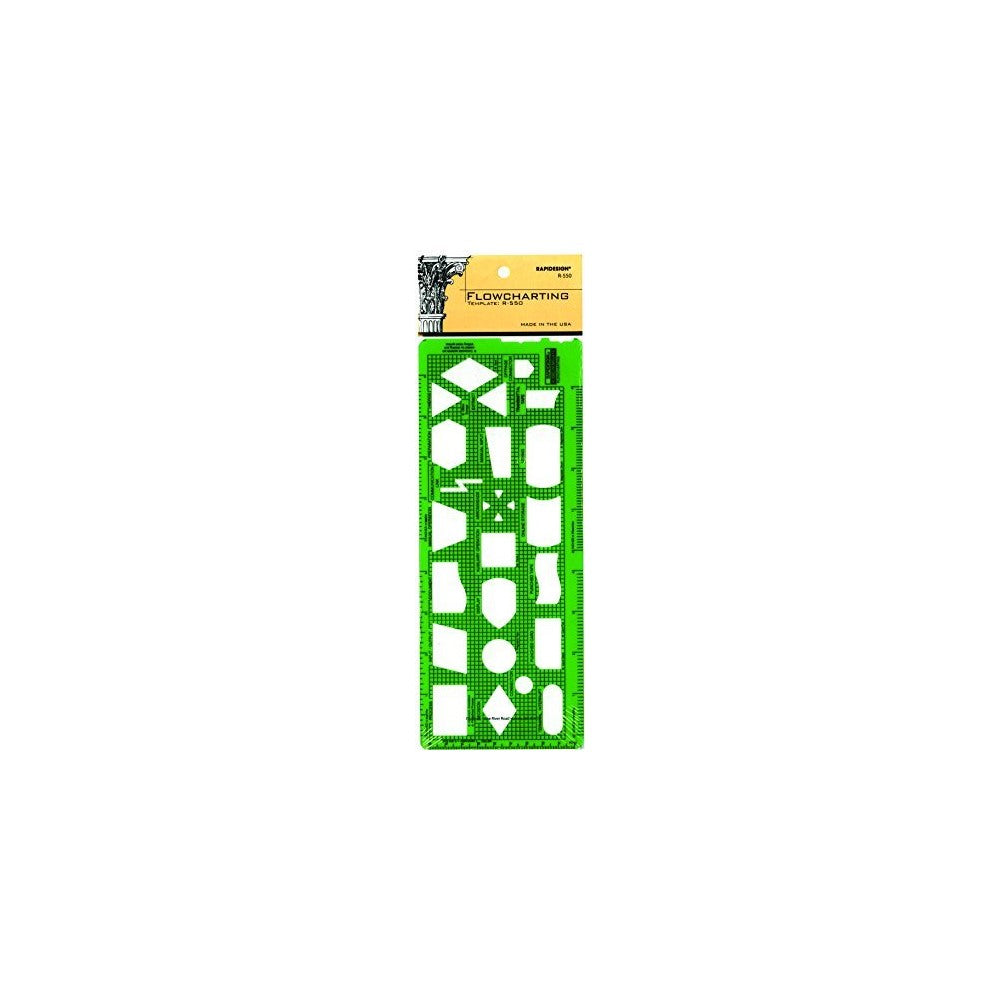 • Rapidesign Flowcharting Template (#R550) contains symbols which confirm to ANSI X 3.5 and ISO 1028. Similar in design to IBM Flowchart template. 1/8", 1/10", 1/15", 1/16" and metric scales included. Made in USA. Rapidesign has the world's largest selection of drafting templates for architects, builders, engineers and graphic designers.