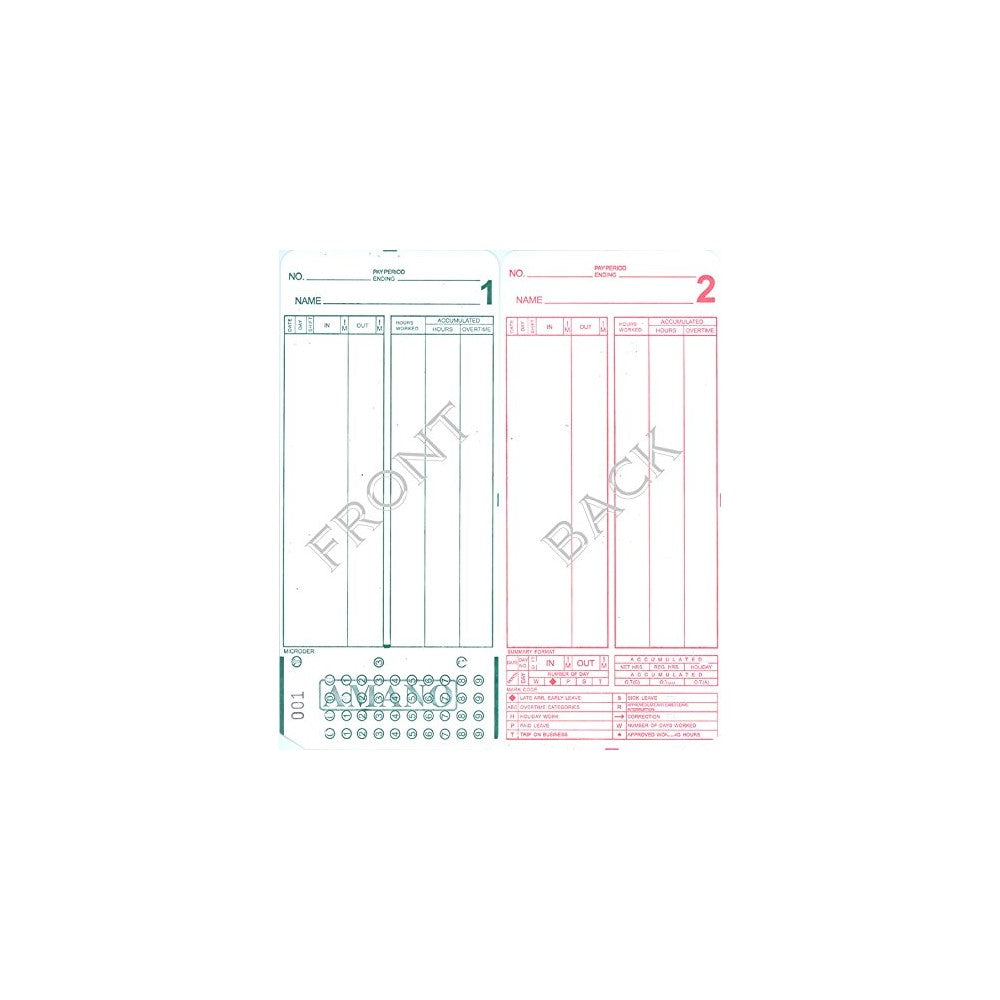 2000 total cards per box20 groups of cards numbered 000-099Compatible with Amano MJR7000 and MJR8000 time clocksPre-punched and ready to useTime cards for Amano MJR7000 and MJR8000 calculating time clocks series 000-099 for up to 100 employees.Brand: Amano, Model: 000-099