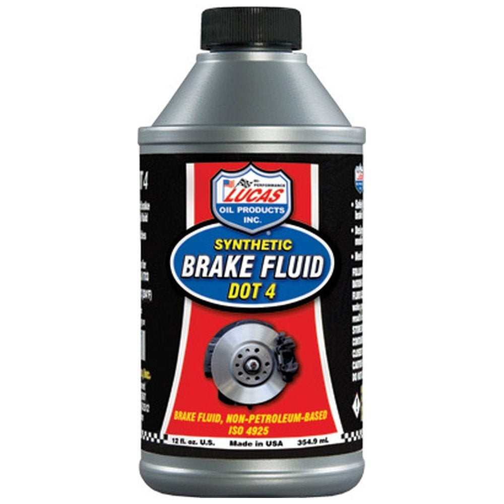 Lucas DOT 4 Brake Fluid is a high quality blend of polyethylene glycol ethers and additives which meet or exceed the industry minimum dry boiling point of 446 Degree F. It meets the Federal Motor Vehicle Safety Standard (FMVSS) No. 116 and SAE J1704 specifications. Lucas DOT 4 Brake Fluid is recommended for use in both disc and drum brake system and clutch system where this type oil product is called out for. Lucas DOT 4 Brake Fluid is compatible with all brake system rubber components and other brake fluids. It prevents seal hardening or softening. It protects against rust and corrosion and provides excellent lubricity. Available in 12 ounce bottle.