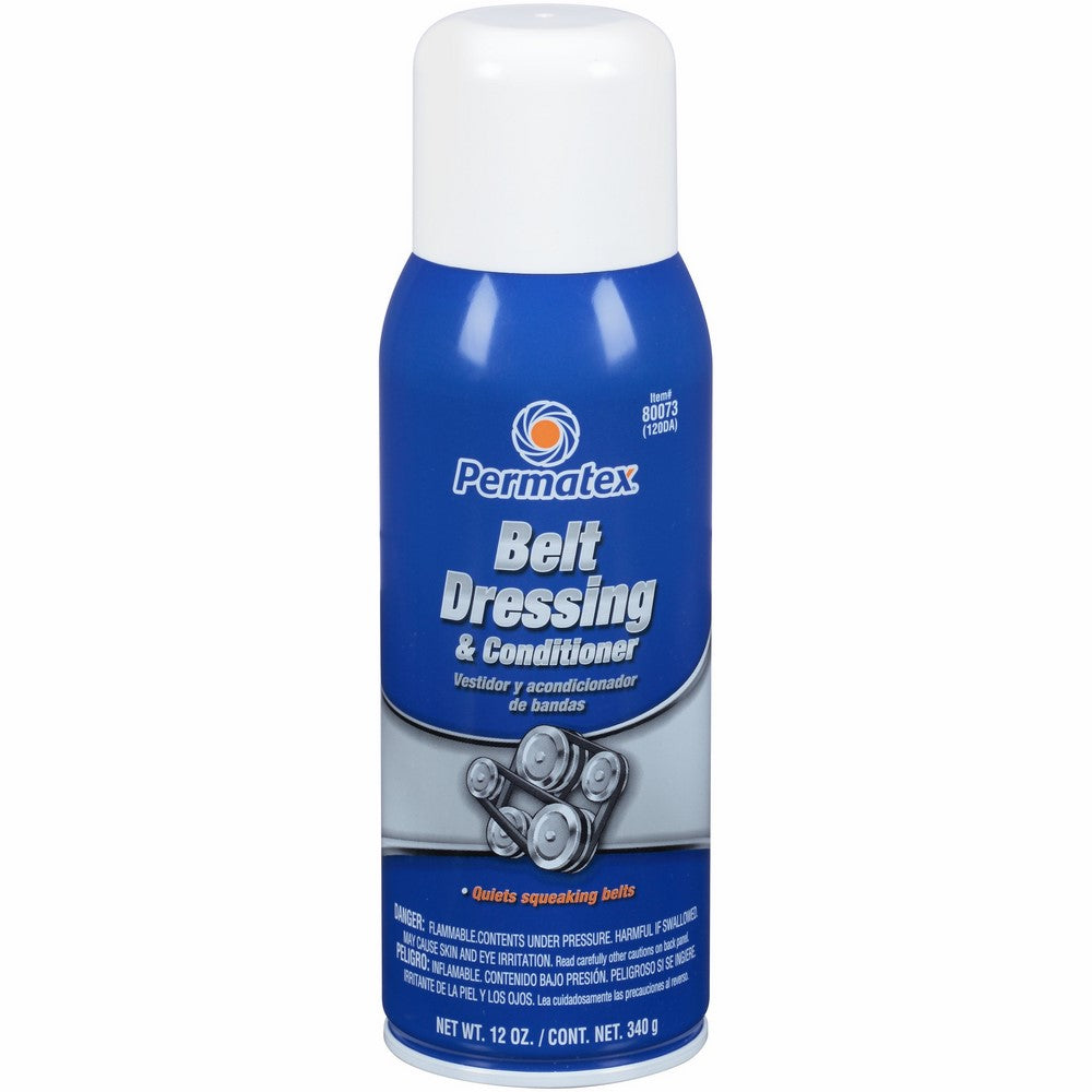 Permatex Belt Dressing and Conditioner penetrates the cord fibers of V belts to restore pliability and flexibility, and to extend belt life. Eliminates squeaking and slipping, and prevents belt slippage due to heat, cold, dampness, dust and glazing. Suggested applications include fan belts, water pumps, power steering, sewing machines, washing machines, air conditioners, lawn mowers and power tools.
