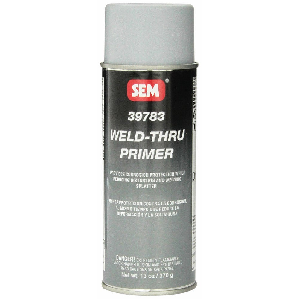 WELD-THRU PRIMER (SEM-39783)Weld-Thru Primer is a zinc enriched coating that minimizes the heat zone during welding for reducing distortion and welding splatter.Brand: SEM, Model: 39783, Size: 16 Ounce