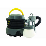 | The unit comes with a one-quart, wide-mouth paint container and convenient on-board storage for the spray gun, 9-foot hose and 6-foot power cord. (View larger.) |