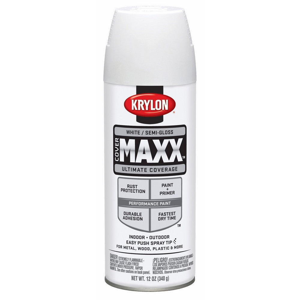 Krylon K09181000 COVERMAXX Spray Paint, Semigloss White, 12 Ounce