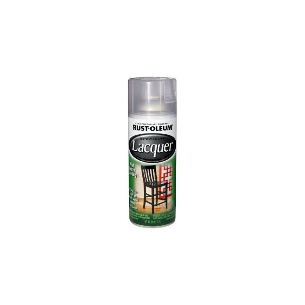 Rust-Oleum Specialty Lacquer Spray adds an ultra-hard, factory-like finish to furniture and accessories like chairs, planters, picture frames, lamps and much more. Apply to almost any interior/exterior surface including wood, metal, plaster, masonry or unglazed ceramic to create an elegant design and finish. Lacquer produces a durable, high luster coating with fast cure and hardening time than regular paint.