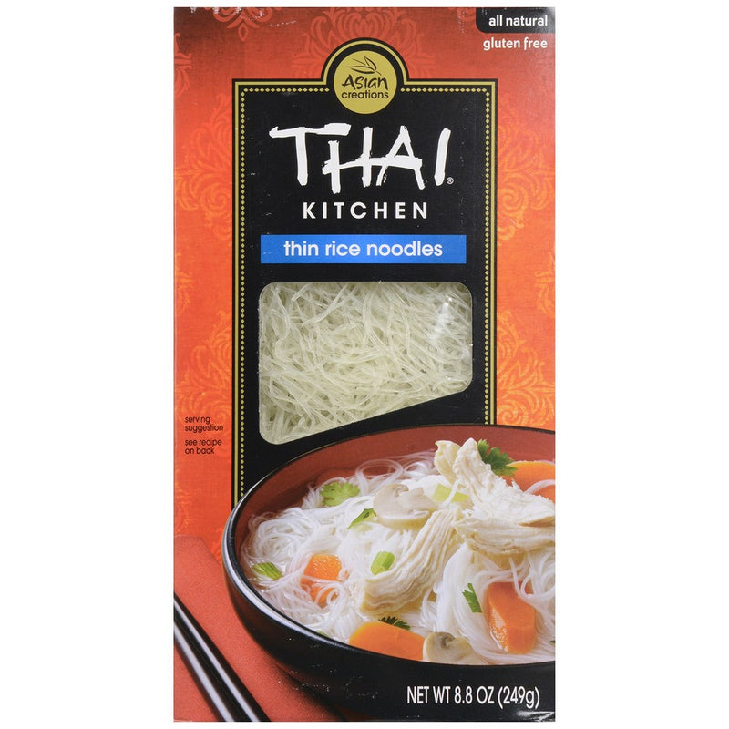 All natural. Select harvest. 100% Pure rice. Versatile and healthy, easy to cook and delicious with any sauce, rice noodles add that memorable Thai Kitchen Thin Rice Noodles, you can now make authentic restaurant-style Thai stir-fry noodle dishes or steaming bowls of rice noodle soup in your own home quickly and easily. We use only the highest quality rice and traditional processes for our signature rice noodles-every batch is steam cooked and slowly dried. The result is a 100% pure rice noodle that is all-natural, wheat-free, cholesterol-free, egg-free and fat-free. Toss them with your favorite pasta sauce, serve them as a side dish with grilled chicken, or stir-fry them with any meat or vegetable for a delicious all-in-one noodle feast! Thai Kitchen- bring that Thai experience home, anytime. Gluten-free. Vegan.