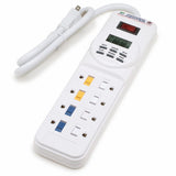 Up to seven time cycles per day, seven days per weekGrounded 3 prong plug with 3 foot power cordSliding outlet safety covers protect outlets not in useUL listedThe Digital Power Center featres a digital LCD displayGrounded three prong plug with three foot power cord and is UL listed