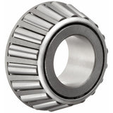 Single cone (inner ring) for connecting to compatible cups (outer rings, sold separately) to form a complete single tapered roller bearingSupports both radial and axial loads between a rotating and non-rotating memberOperating temperatures range from-54 to 120 degrees C (-65 to 250 degrees F)Stamped steel cage evenly spaces rollers for reduced friction, vibration, and noiseOpen configuration for lubrication applied in place