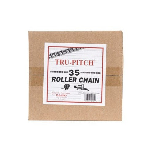 "TRUE-PITCH'' ROLLER CHAIN10' lenthNo. 35Pre-stretchedCarbon steel chain"DAIDO'' ROLLER CHAIN 10' lenth No. 35Roller ChainPre-stretched Carbon steel chain Meets all ANSI standards Boxed.Brand: Daido, Model: TRC35-MD