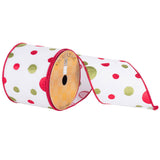 4" x 10yd White Ribbon with Red and Green Embroidered Dots