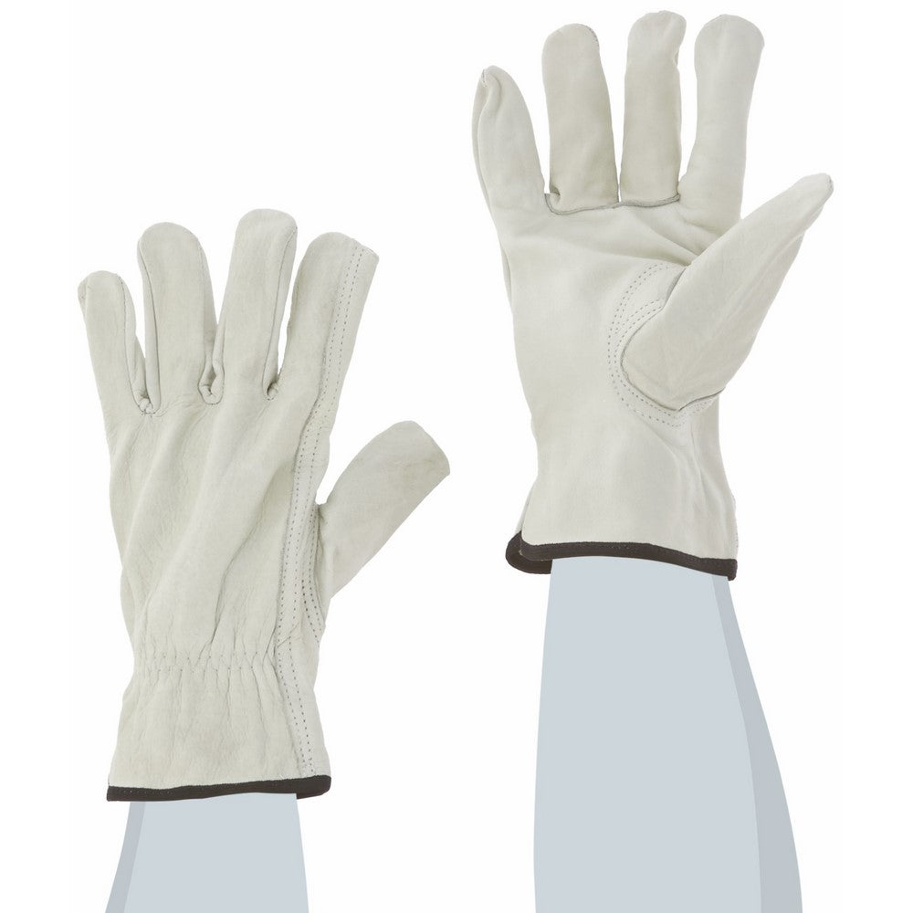 Durable grain leatherKeystone thumb for maximum mobility and comfortOpen cuff with shirred elastic back for a secure fitDouble stitched index finger for strengthGood abrasion resistance