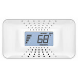 The First Alert CO710 Carbon Monoxide Alarm with 10-Year Battery and Digital Temperature Display detects dangerous carbon monoxide for up to 10 years. This carbon monoxide detector uses an electrochemical carbon monoxide sensor, the most accurate CO detection technology available, to detect the CO you can't see, smell, or taste in the air. A built-in 10-year lithium battery means you never need to worry about changing batteries during the lifetime of the alarm. This stylish CO monitor is designed to sit on top of a dresser or tabletop, and it has a backlit digital display that clearly shows the ambient temperature, as well as current and peak CO concentrations. An 85-decibel horn sounds if carbon monoxide levels are too high, and a test/silence button silences the alarm and allows you to test its functionality.