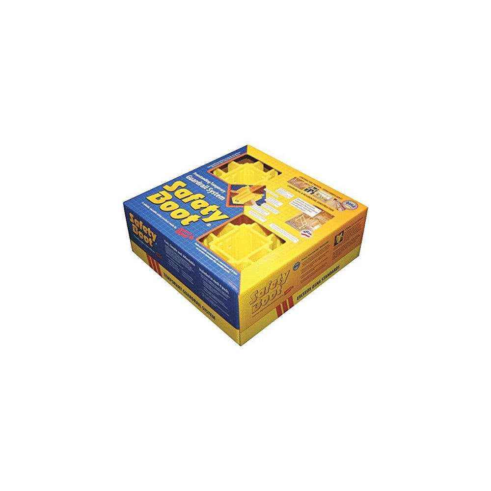 Quantity: 4Material: High Impact PolymerIncludes: 4 Safety Boot Units, Installation Instructions With Detailed Illustrations, 1 - 3/8" Drive Drill Adapter, 3/8" X 1-1/2" Fender Washer, Stress Engineering Report Summary And Fastener Specifications For Various Sub-Floor MaterialsSafety Boot Guardrail System Provides A Method For Constructing Versatile, Freestanding, Temporary Guardrail And Stair Rail SystemsExceeds OSHA Guardrail Regulations In Commercial And Residential ConstructionFully Reusable Safety Boot Features A Unique Design That Allows Toe Boards To Be Inserted Quickly And Easily For Complete OSHA Required Toe Board ProtectionAll Critical Stress Points Are Reinforced With A Double Polymer Thickness For DurabilityUses 2" X 4" Lumber For Rails And Posts (Posts Are Doubled)