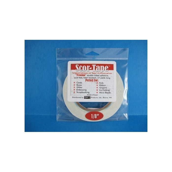 Dimensions: 6.15 in. h x 5.9 in. w x 0.2 in. dMade in KRSCOR-PAL-Scor-Tape. Premium double-sided adhesive that is perfect for cards, boxes, glitter, embossing, scrapbooking, foils, ribbon, origami, iris folding, micro beads, and much more! This tape is acid free and heat resistant. Measurements: 1/8in. x 27 yards. Imported.