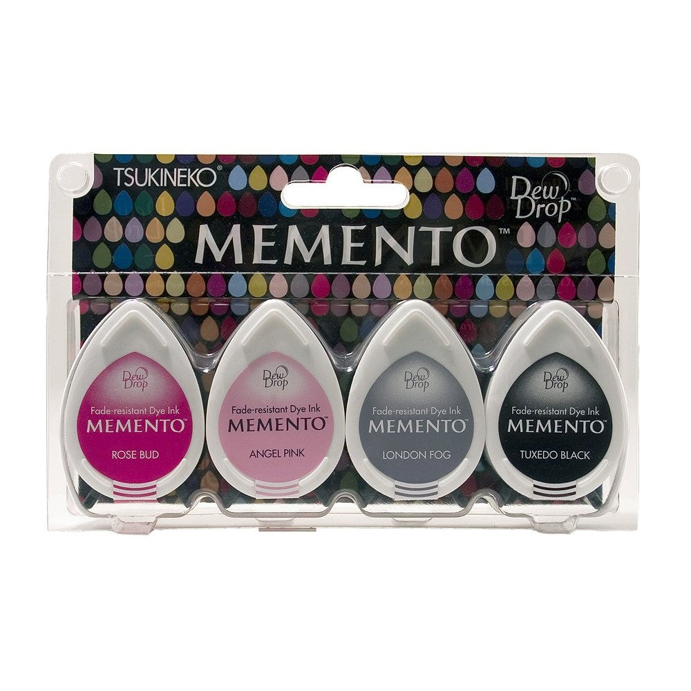 Memento dew drop 4-pack feature four color-coordinated fade-resistant dew drop dye inkpads, packaged in a reusable clamshell; these 4-pack' colors are the same as the color sets of the memento marker 4-pack for easy purchaseMemento's innovative inkpads capture fine details while offering exceptionally even coverage; These extraordinary fade-resistant dye inks are a staple among new and experienced crafters; Also, clean up is easy with StazOn all-purpose stamp cleanerMemento fade-resistant ink is available in full-size inkpads, dew drop inkpads, markers, and inkers all in the same 24 contemporary colorsCleans up easily with stazon all-purpose stamp cleanerMeasures 5.645 by 3.659 by 1-inch