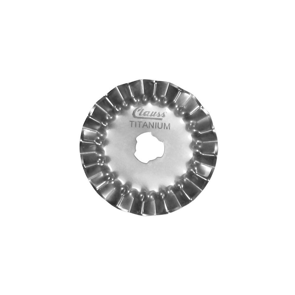 Clauss Titanium Bonded Rotary Cutter Replacement Pinking Blade. Clauss cutting instruments have been the choice for professionals since 1877. The professional heritage means Clauss tools are engineered for the demands of continuous daily use. This rotary cutter blade is made of Titanium Bonded cutlery-grade steel and is through-hardened to hold an edge. Clauss true professional products will withstand the toughest task and continue delivering over extended use. This package contains (1) 45mm Pinking Blade for use with the 45mm Claus Titanium Bonded Rotary Cutter (sold separately).