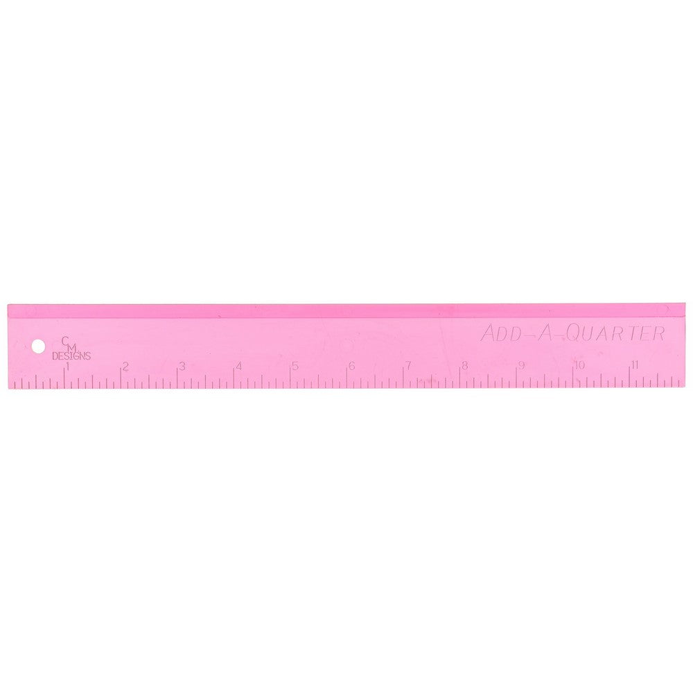 CM Designs ruler 12add-a-quarter pinkCM Designs rulers combine the speed of rotary cutting quilt pieces with the accuracy of using templatesIt will automatically add a seam allowance to any straight angle, and provide a straight edge for your rotary cutterIt's fast, easy, you can cut multiple layers, and it is Made of recycled plastic12Add-a-quarter pink- with the specially designed lip, it automatically adds the Customary 1/4Seam allowance