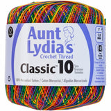 Aunt Lydia's Crochet CottonThis high luster mercerized cotton crochet thread is perfect for crochet projects both large and smallThis thread is available in a wide range of fashion solids neutral basicsAunt Lydia's Crochet Cotton. This high luster mercerized cotton crochet thread is perfect for crochet projects both large and small. This thread is available in a wide range of fashion solids neutral basics and alluring multi-colors that are ideal for home decorating and fashion projects. Article 154 is a size 10 bedspread weight 3ply 100% mercerized cotton thread. White and Ecru: 400yd/365.75m Solids: 350yd/320m and Shaded Colors: 300yd/274.3. Size 7/1.5mm crochet hook is recommended. Care: machine wash (. 104F/40C) dry flat do not bleach do not dry clean OK to iron. Imported.