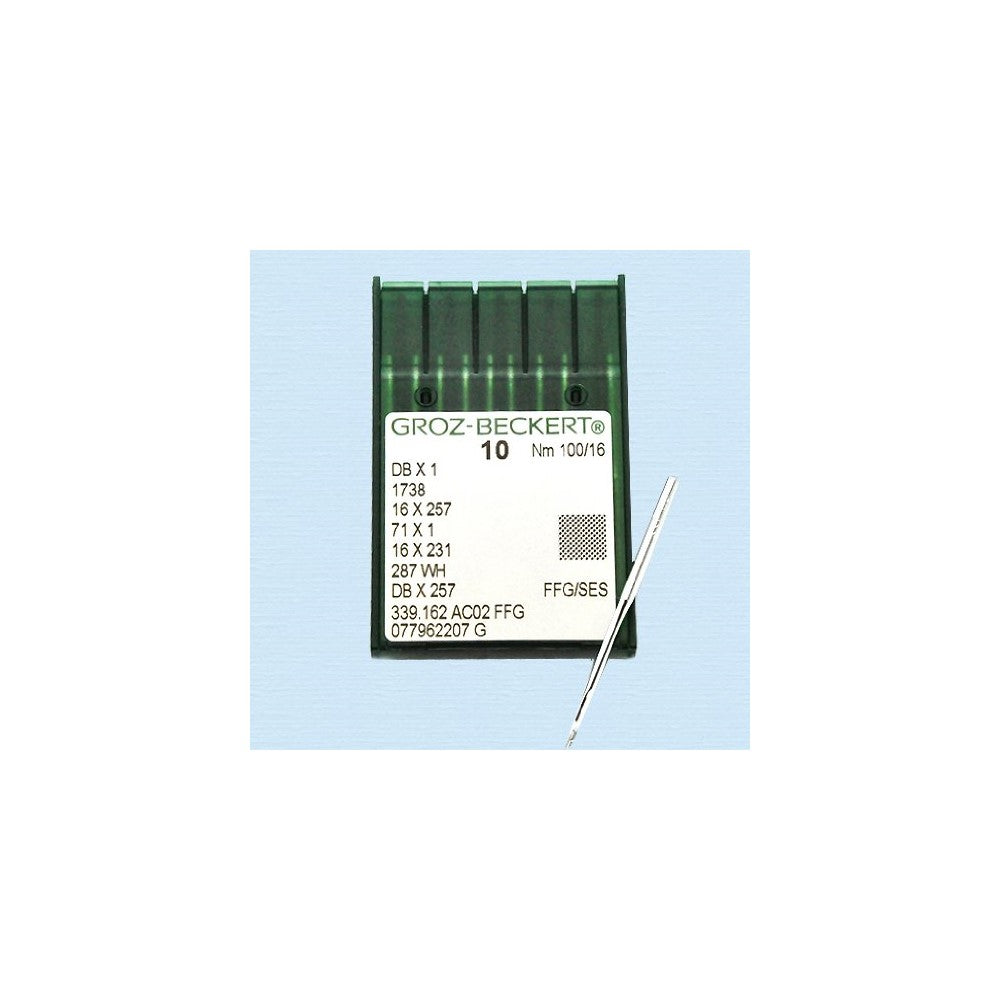 Groz-Beckert GB 16X231Nm 100/16 (Pack of 10 Needles)DB x 1, 1738, 16 x 257, 71 x 1, 16 x231, 287 WH, DB X 257339. 162 AC002 FFG077962207 GGroz-Beckert GB 16X231Nm 80/12 (Pack of 10 Needles) Needles for Most Industrial Straight Stitch Single Needle Machines. Groz-Beckert needles have round shafts and...