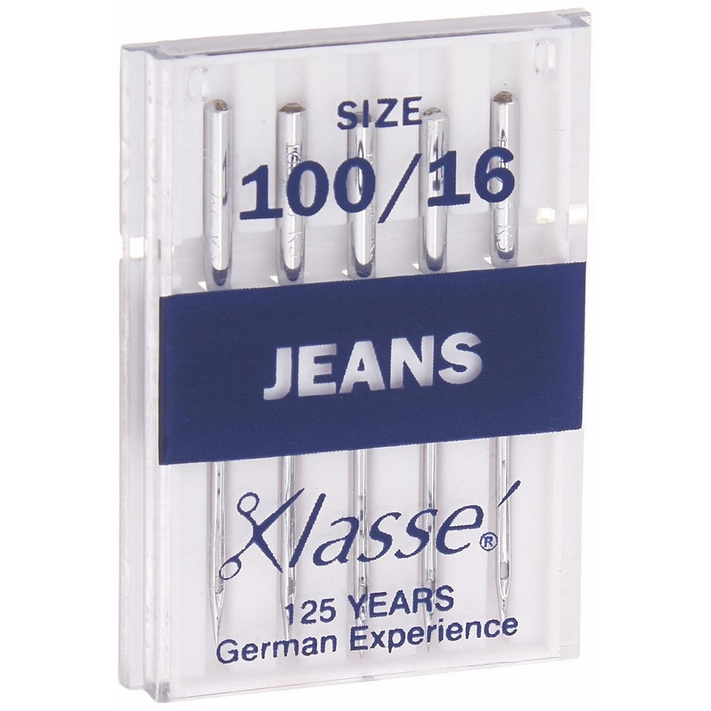 • KLASSE-5 German-engineered steel jeans/denim machine needles. The very sharp point and strong shank enables this needle to penetrate dense fabric without deflection. Best for: denim fabrics heavy twill workwear canvas heavy linen and other densely woven fabrics. Use with cotton synthetic blends cotton wrapped polyester 100% polyester and topstitching threads.