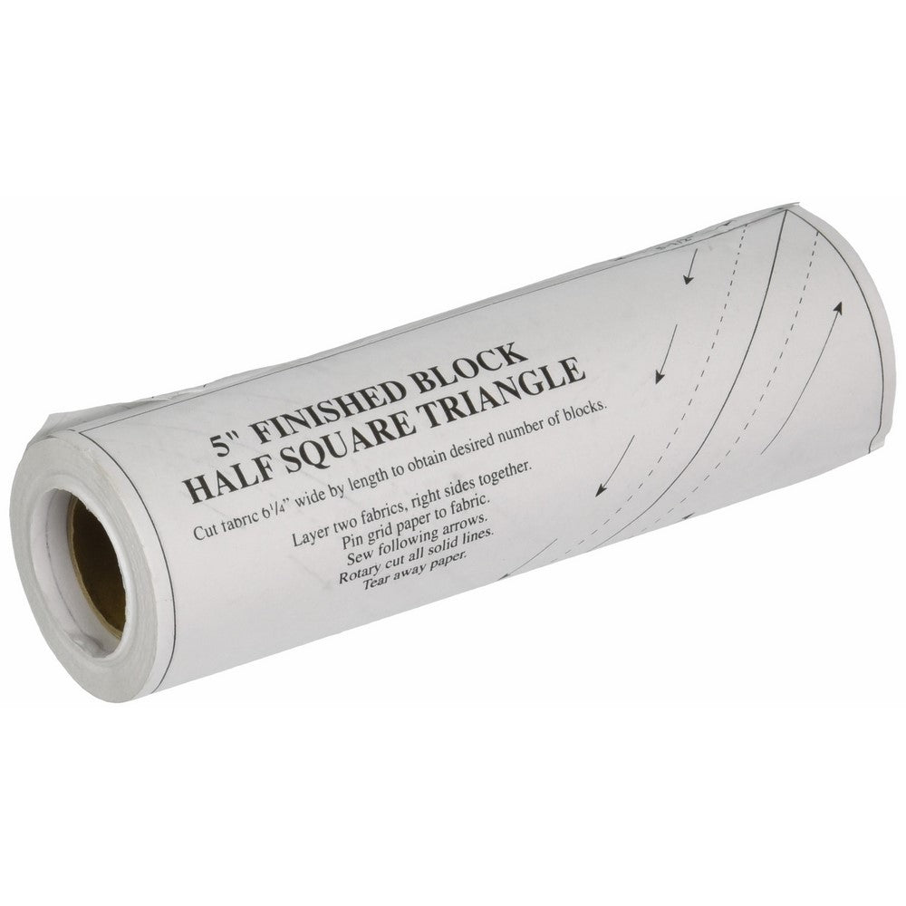 • Sew On A Roll-Half Square Triangles On A Roll. The paper grid is a pattern for sewing and cutting. It is printed on a roll of paper that enables you to make as many or as few triangles as you need with 2 different fabrics. Simply select your fabrics place them together place the paper on top of the fabric pin the layers together sew on the dotted lines and cut on the solid lines. You'll have half squares in a jiffy. Seam allowances are built in. Instructions are provided on the paper. This package contains 50 feet of 5 inch half square triangles. Made in USA.