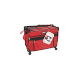 The most compact, versatile, and fun carry-on. Ideal in any situation: Use as a luggage carrier, briefcase, computer bag, hand cart, overnight bag, and more. Includes a label for name, address, and contact information when you travel. This bag features Ballistic Nylon construction, removable telescopic pull bar, strong frame, mesh pockets for your fabrics, 2 inside straps to store a sewing machine, top and front openings for easy access, and versatile pockets to keep all your sewing tools organized. It turns on a dime, is easy to lift, light, and easy to pull, stacks up to 150 pounds, folds to 3" for storage, and it fits under most airplane seats! Available in a variety of colors. Measurements: Exterior: 20"L x 14"H x 10"D Interior: 19"L x 12-1/4"H x 10"D Top Access: 16"L x 6-1/4"D Front Access: 17"L x 12"D