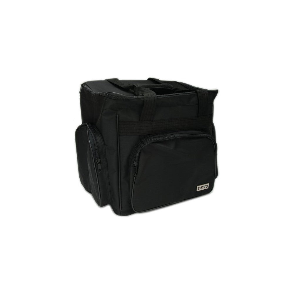 This bag was designed to stack on top of the Tutto Machine On Wheels Cases securely or used individually. It will hold your sewing accessories or a serger and makes a great companion piece for all of your sewing travel needs. This bag features 3 outside pockets with zipper closures, padded side walls, and inside mesh pockets. Available in a variety of colors. Measurements: 14-1/2"L x 14-1/4"H x 10-1/2"D.