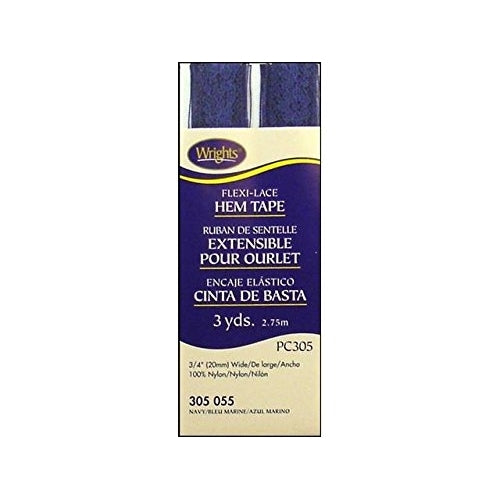 Flexi lace hem tape is perfect for hems that aren't always hiddenMade 100 percent nylonFeatures colorfast, quick, easy and neat hem tapeIt is machine washableAvailable in navy color; measures 3-yards length by 3/4-inch widthThis flexi lace hem tape is perfect for hems that aren't always hidden. Made 100-percent nylon. Features colorfast, quick, easy and neat hem tape. It is machine washable. Available in navy color. Measures 3-yards length by 3/4-inch width.