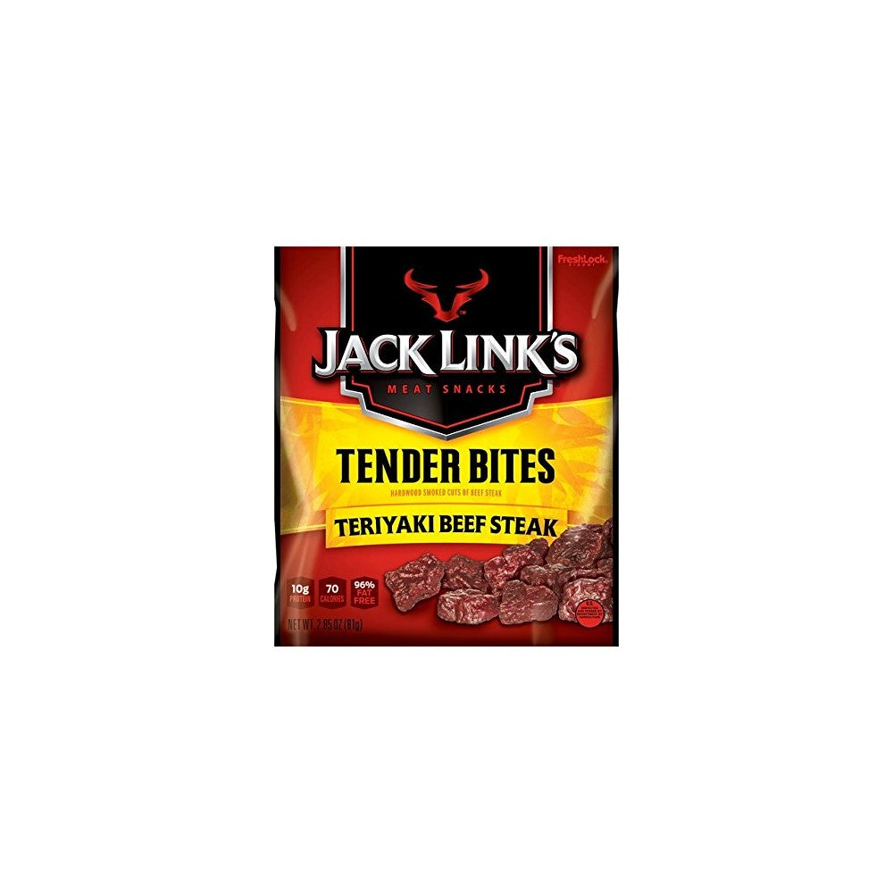 Beef steak nuggets, 3.25 ozTeriyakiTender cuts of beef steakMesquite smoked and dried96% fat free, 10 grams protein, 5 grams total carbsBeef steak nuggets Teriyaki Tender cuts of beef steak Mesquite smoked and dried 96% fat free 10 grams protein 5 grams total carbs 3.25 ozBrand: Jack Links