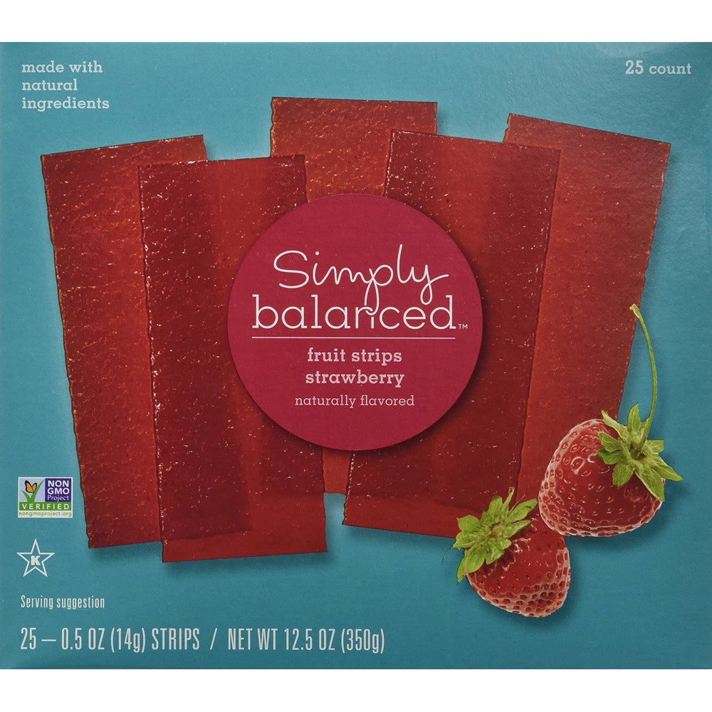When you want the delicious taste of strawberry on the go, grab some Simply Balanced Strawberry Fruit Strips. Made with natural ingredients, they're perfect for your lunchbox, car, office - anywhere.Brand: Simply Balanced