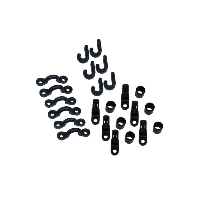Includes 6 pad eyesIncludes 6 j-hooksIncludes 6 pair terminal-end fittingsFor Use with 1/4-inch deck Rigging cord