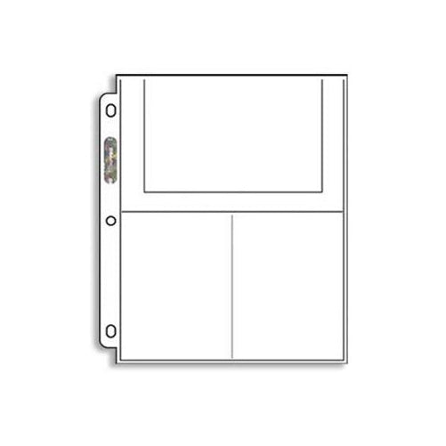 Ultra-Pro Protective Pages100 Pages per boxHolds three continentalsize postcards or 4" x 6" photos with 1 displayed horizontally and 2 displayed vertically. Alternatively, if you put the postcards or photos in the pages backtoback, each 3pocket page will hold six items. . Pages are clear on both sides. Sheet size: 81/2" x 113/8". Pocket size: 41/8" x 61/8". Archival Quality. AcidFree. PVCFree. Super Clear. Very Strong. Prepunched holes. These pages fit in our standardsize albums and other 3ring binders