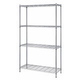 The Quantum Storage Systems RWR72-1830LD four-tier standing wire shelving unit has four shelves and is made of chrome-plated carbon steel for strength, durability, and to resist dirt buildup and corrosion. Its open wire design offers visibility of contents, permits air circulation in the work environment, and helps resist dust build-up. The shelves adjust in 1" increments to accommodate items of varying heights, and have a welded construction reinforced with wire trusses and struts for strength. The posts are grooved at 1" intervals to help guide installation of the shelves at desired heights, and come with adjustable levelers to facilitate use on uneven surfaces. Split sleeves on the posts hold and support the shelves. This shelving unit has been manufactured to meet National Sanitation Foundation/American National Standards Institute (NSF/ANSI) Standard 2 for use in food handling and processing, dry storage only.