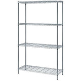 Four-tier standing wire shelving unit has four shelves and is made of chrome-plated carbon steel for strength, durability, and to resist dirt buildup and corrosionOpen wire design offers visibility of contents, permits air circulation in the work environment, and helps resist dust build-upShelves adjust in 1" increments, and are reinforced...