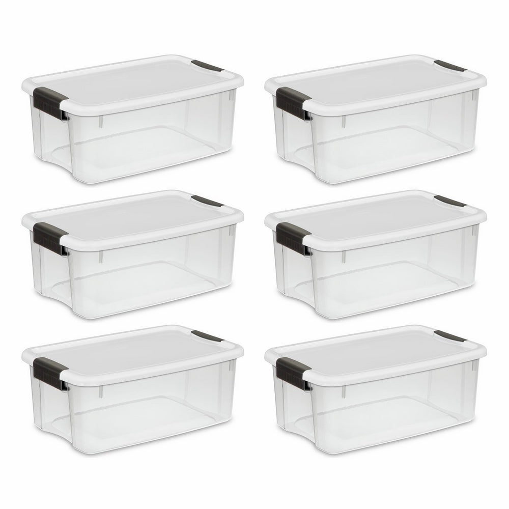 Outside Dimensions: 18.13 x 12.25 x 7Includes 6 Boxes, 6 Lids;The four sizes of the Ultra Storage Boxes are ideal for those who want the ability to quickly identify contents yet need a durable storage solutionMade in the USASee-through base. Heavy-duty latches attach the lid securely to the baseStackable for efficient use of spaceThe 18 Quart Ultra Storage Box features durable latches that attach the lid securely to the base to ensure that contents remain secure when stored. The see-through base allows contents to be easily identified, and multiple bases are able to stack on top of each other. This latch storage box is ideal for storing small items in the basement, garage, and attic.
