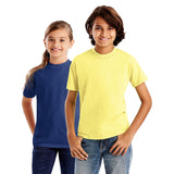Kids are rough on clothes. That's why parents rely on our famous Hanes Beefy-T T-Shirt. Lofty cotton jersey goes easy on youthful skin. Preshrunk for lasting fit with high stitch density for low-pill durability. Shoulder-to-shoulder taping resists raveling and rip-out. Set-in ribbed crewneck keeps its shape wash after wash. Two-needle topstitch trim. Lay Flat Collar - guaranteed or your money back.