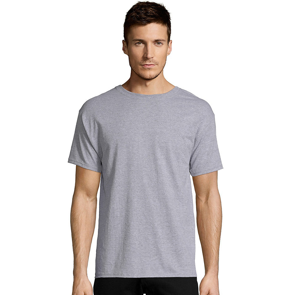 Hanes Men's EcoSmart Short Sleeve Tee Value Pack (4-pack) - Style O51704Midweight 5.2 oz. 50% cotton / 50% polyester jerseyNow available in a conveniently priced value-pack. High stitch density for low-pill durability. Shoulder-to-shoulder taping r esists raveling and rip-out. Set-in sleeves and ribbed crewneck keeps its shape wash after wash. Either tagless or with easily removed tearaway tag for comfort. Machine wash cold with like colors remove promptly. Use only non-chlorine bleach when n eeded. Tumble dry low. Cool iron if needed.