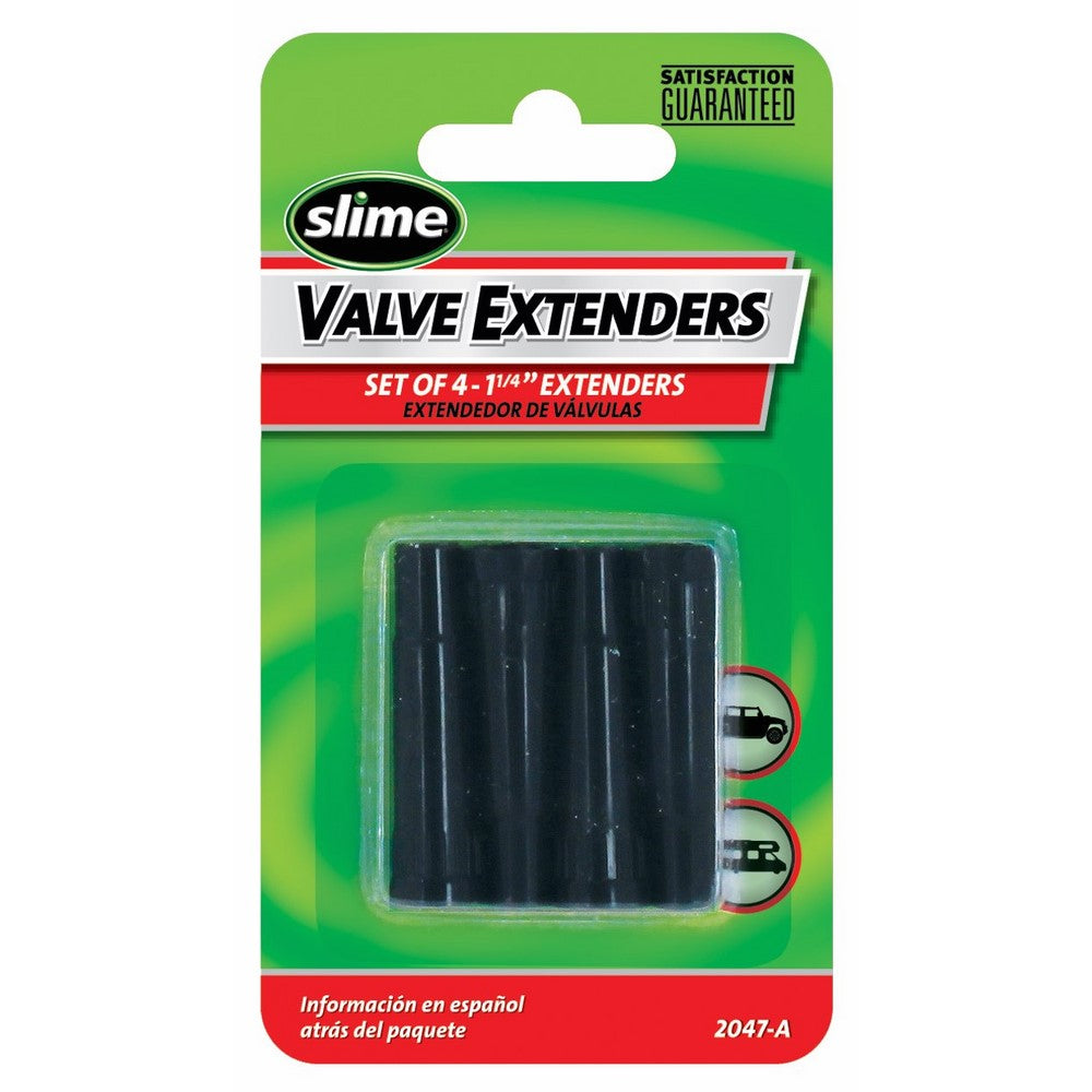 Slime's Plastic Valve Extenders make hard to reach valves accessible. Includes (4) 1.25-inch extenders for duallys and otherwise difficult to reach stems. No need to remove valve cores before installing.