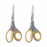 Titanium bonded blades are 3X harder than stainless steel; blades stay sharper longerCorrosion resistantContoured soft grip handlesIdeal for paper, cardboard, light line, fabric and other materials. Product dimensions: 10.9 x 0.8 x 4.4 inchesManufacturer's limited lifetime warrantyWestcott Titanium-Bonded Scissors are lighter, stronger and sharper. Lightweight yet durable enough for any cutting job. From the Manufacturer: Scissors feature high-performance, titanium-bonded blades that provide three times the strength of stainless steel and resist corrosion. Scissors are ideal for paper, cardboard, lightweight line, fabric and other materials. Straight handles have a contoured soft grip