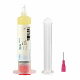 The flux is Easily cleaned and comes in a 10 cc. Syringe with Plunger and tip.