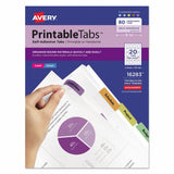 This is one sticky situation you'll appreciate. With these Printable Self-Adhesive Tabs, you can organize bound reports, reference manuals, personal organizers and more quickly and easily. Use free easy-to-use templates from Avery Design & Print to format the tabs for printing, or label them by hand. The self-adhesive tabs are repositionable when applied, allowing for a bit of experimentation to find just the right spot. Over time, the adhesive becomes permanent, proving these tabs will stick by you for the long term. Handwrite or print tabs using laser and inkjet printers. File Insert/Tab Type: Self-Adhesive File Folder Tabs; Color(s): Assorted; Tab Material(s): Plastic; Assortment: Blue; Green; Orange; Purple; Yellow.