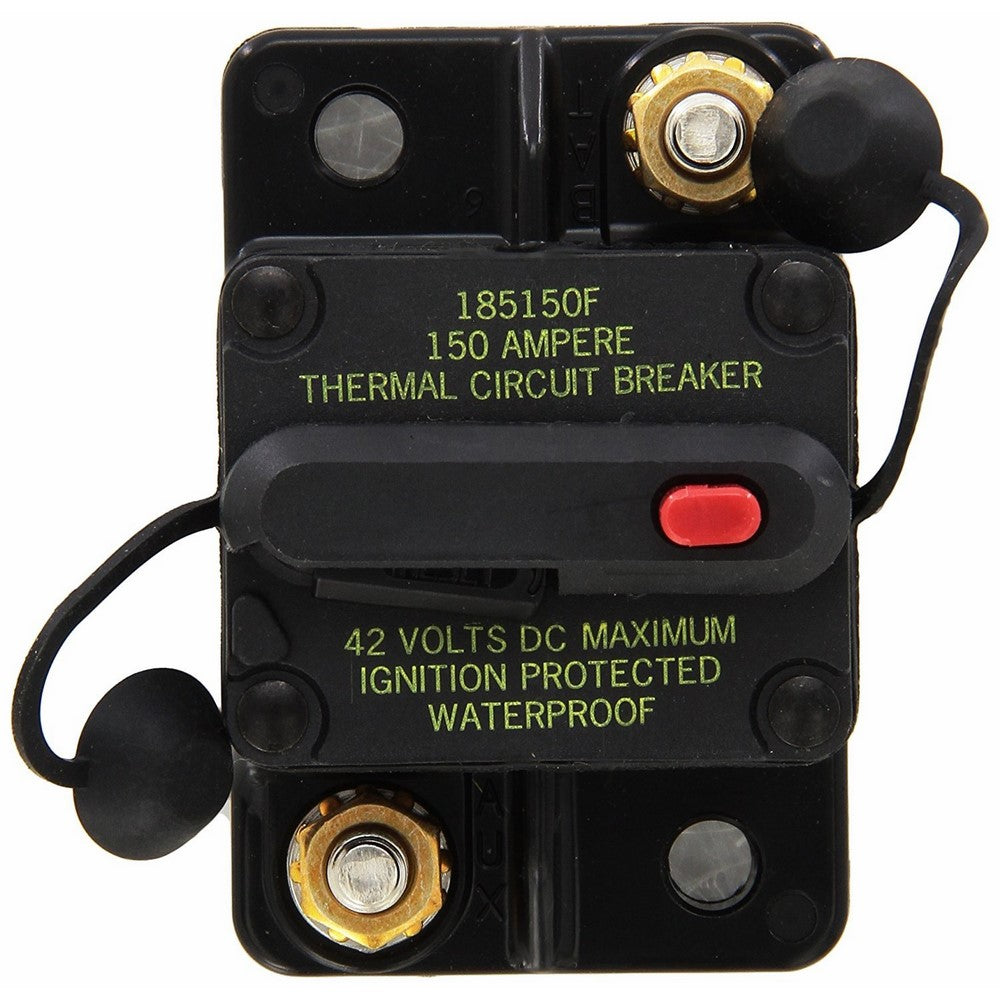 High Amp CB185 Type III Circuit Breakers are typically used in auxiliary and accessory circuits for trucks, buses, RVs and marine applicationsFlush mount design with push-to-trip button that acts as a master disconnect for when you don't want the protected circuit powered150 Amp, 42 Vdc; manual resetSealed waterproof housing; 1/4-28 threaded studs; SEMS nuts installed1 pack (clam)