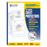 Economy weight, archival quality polypropylene sheet protectorsReduced glare finish for better visibilityReinforced binding edge for long lasting useTop loading100 sheet protectorsC-Line's Economy Weight Polypropylene Sheet Protectors are best for maximizing binder capacity. The reduced glare finish aids in visibility of your materials. These sheet protectors are top loading with a reinforced binding edge for long lasting use. The polypropylene material provides archival quality protection. Perfect for use in training manuals and other lengthy documents you store in standard three-ring binders. No hole punching necessary. 100 sheet protectors per box. With over 60 years of experience, C-Line's many product offerings include sheet protectors, name badges and holders, shop ticket holders, media storage products, laminating film, report covers and project folders, photo holders, Memory Book page protectors, office accessories, transparency film and more.
