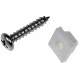Slotted hex washer head screw - zincThread size: Number: 14 x 3/4 inchWashers: Not includedNuts: Nylon square push-inDurable design for a long service lifeDorman offers a comprehensive line of License Plate Retainers. More like a kit than a single part, they come with all the necessary hardware for a complete repair.