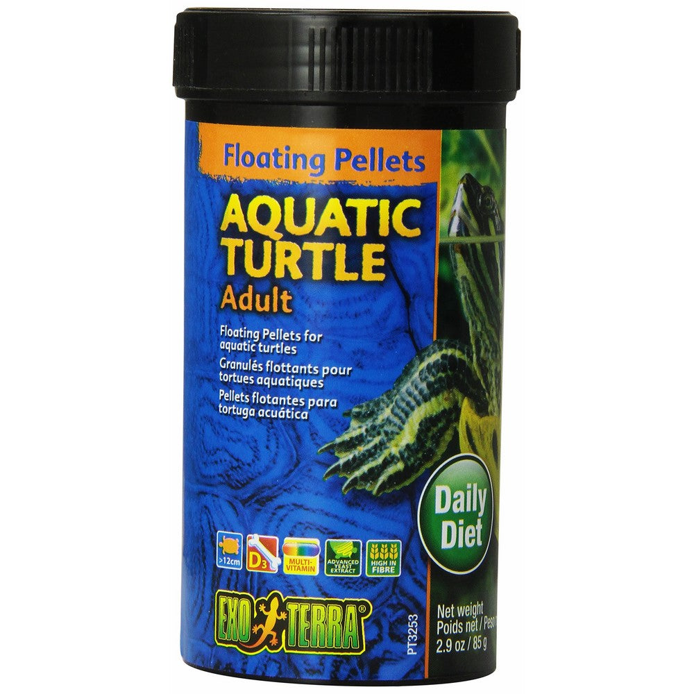 Exo Terra Aquatic Turtle Adult food is a nutritious pellet diet made with Gammarus shrimp and fortified with vitamins and minerals. Exo Terra Aquatic Turtle Adult food provides all adult aquatic and semi-aquatic turtles with a rich source of nutrients including vitamins, calcium (multiple sources), quality protein and more. This high quality extruded floating pellet helps turtles to maintain a hard shell due to both the natural and supplemented sources of calcium. Vitamin D3 is included and essential in ensuring proper absorption of calcium. These extremely palatable floating pellets deliver quality nutrition. Exo Terra Aquatic Turtle Adult food includes "Advanced Yeast Extract" to help support a healthy digestive system. Exo Terra Aquatic Turtle Adult food is a nutritious daily food for adult aquatic- and semi aquatic turtles such as red-eared sliders, map turtles and wood turtles.