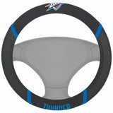 FANMATS NBA Oklahoma City Thunder Steering Wheel Cover features your favorite team and dresses up your vehicle interior. Crafted with a combination of faux suede and mesh fabric, embroidered with your team logo and team name. Keeps your steering wheel cool in the summer and warm in the winter. Approximately 15 inches in diameter, the steering wheel cover fits most vehicles. Customize your ride and announce your team spirit with pride.